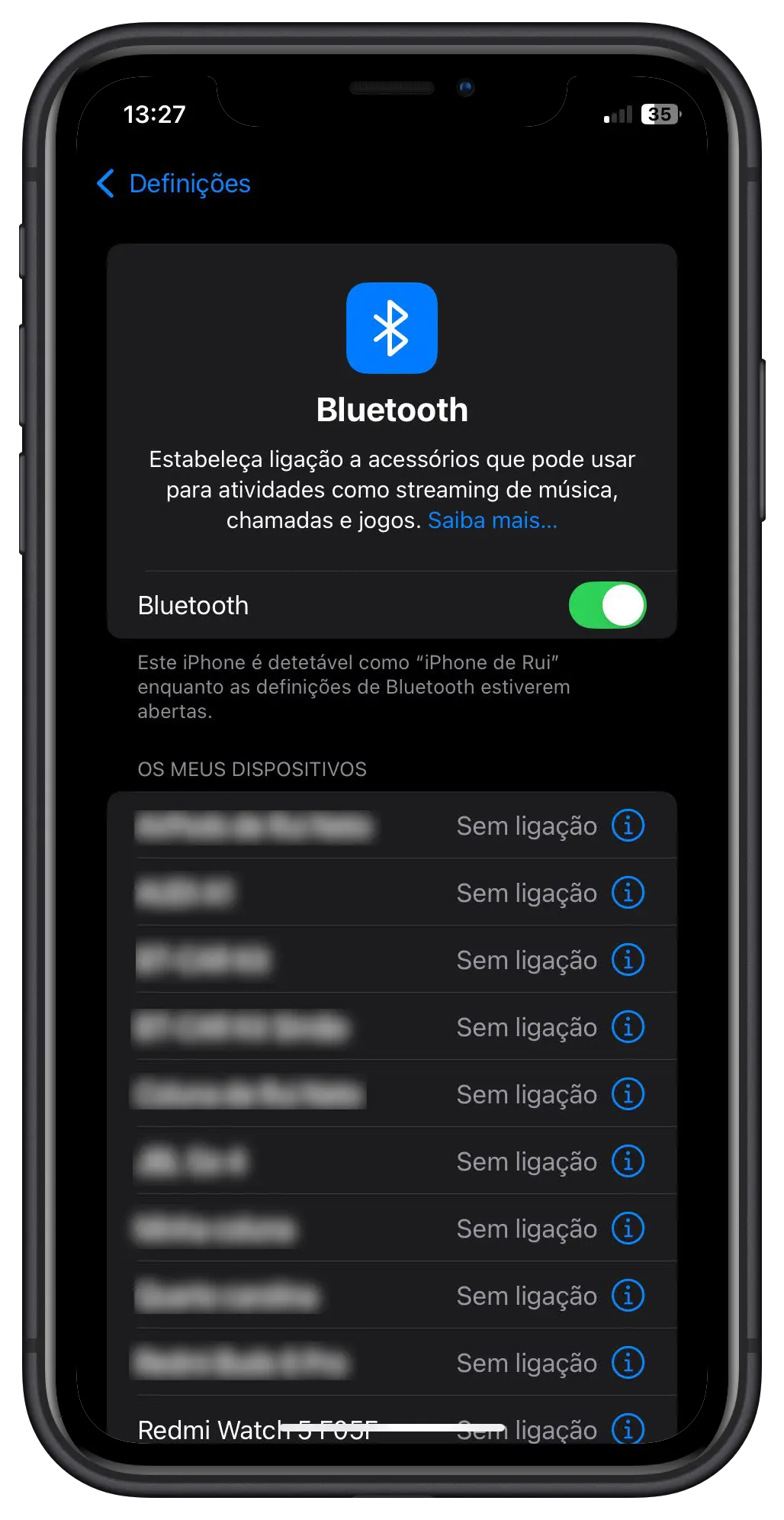 O Bloqueio dinâmico utiliza o Bluetooth para comunicar entre o computador e o smartphone, pelo que o primeiro passo é certificar-se de que o Bluetooth está ligado em ambos os dispositivos: