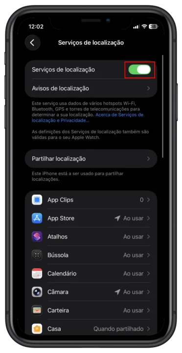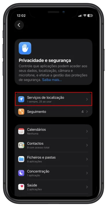 Esta é a definição principal que permite ao seu iPhone utilizar o GPS. Aceda a "Definições" > "Privacidade e segurança" > "Serviços de localização" e certifique-se de que o switch está ativado.