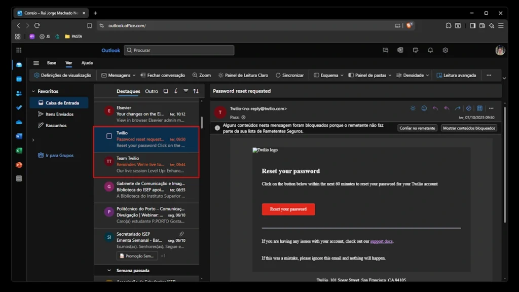- Por exemplo, se quiser que todos os emails sobre "Twilio" se destaquem, basta escrever "Twilio" no campo do assunto.