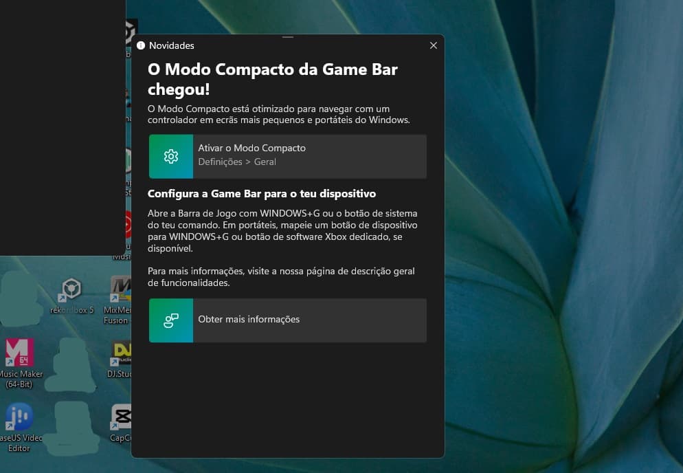 - Barra de Jogos do Windows, perfeita para gravar e monitorizar o sistema.