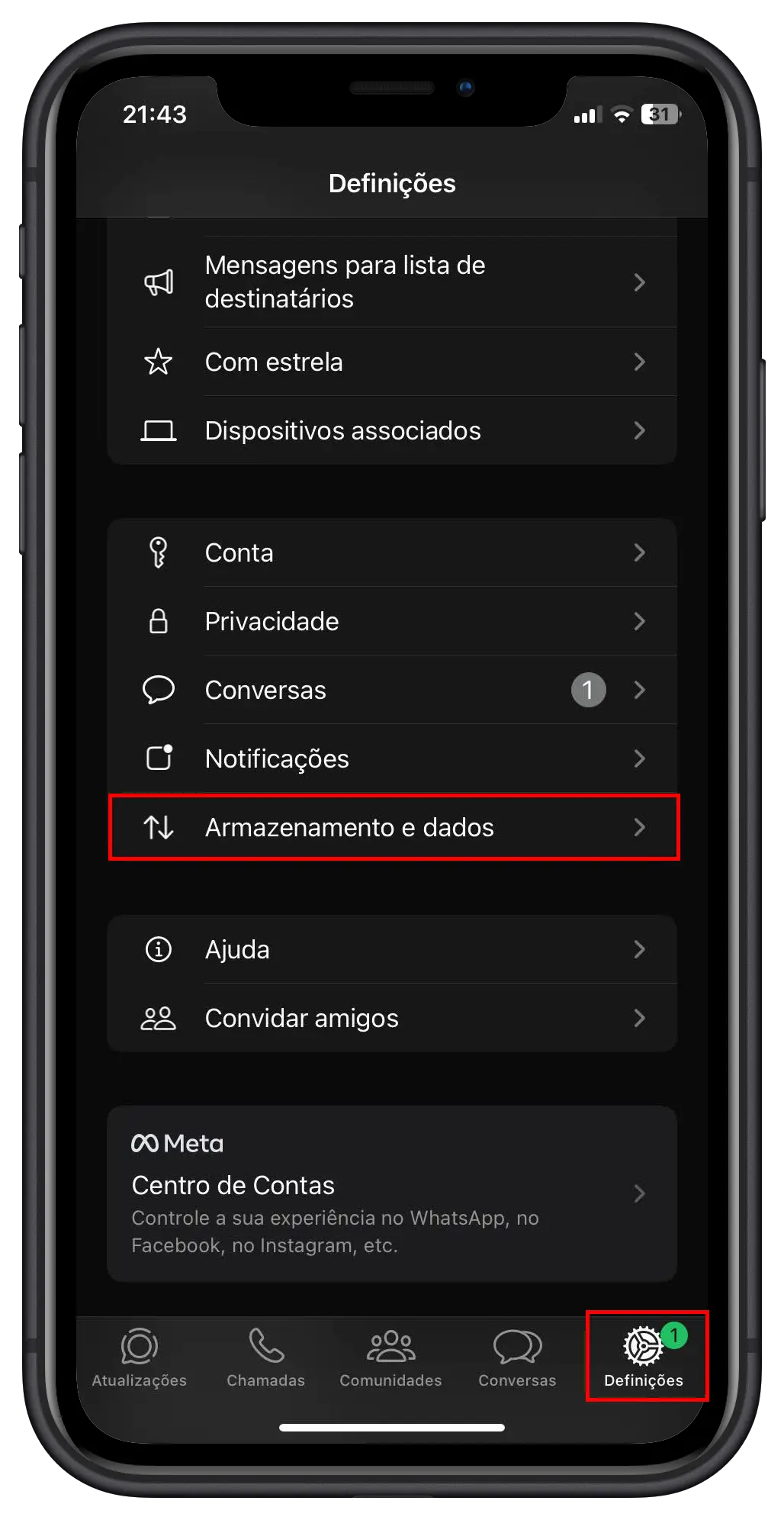 Felizmente, a Meta, empresa-mãe do WhatsApp, implementou ferramentas eficazes para ajudar os utilizadores a gerir este problema. Em vez de apagar ficheiros manualmente, um processo moroso e frustrante, pode usar o gestor de armazenamento integrado.