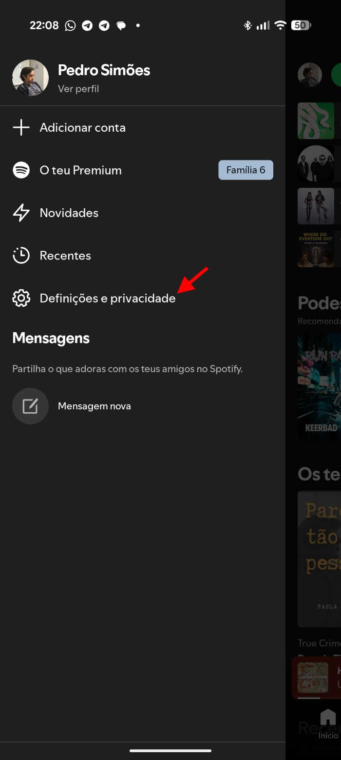 No menu que aparece, selecionar Definições e privacidade. Por fim, descer até à secção Qualidade do conteúdo de media. Aqui dentro, vão estar acessíveis várias opções para streaming por Wi-Fi, dados móveis e downloads. Bastará escolher “Qualidade original” para os seus modos de audição preferidos.